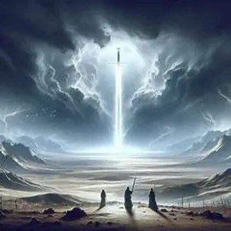 Suddenly, the scene changed, as if a TV channel change were made with a static noise. I was now seeing high up in the sky. I saw an enormous sized Sword, the top like a cross. It was bright and brilliant, silver, and white, glimmering full of light. It came down slowly from Heaven and pierced into the middle of the country, of the United States of America.