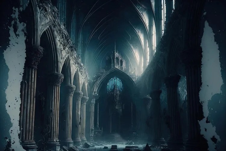 I was standing in a tattered dress in a dark gray scene- A very large, old, abandoned Church/Cathedral looking building, and I was deep inside facing the door entrance.